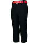* 14 ounce per linear yard, 100% polyester double knit * 90% polyester/10% spandex insert * Ladies' fit * Low rise, elastic waistband with inside drawcord * Tunnel belt loops * Two-snap closure * Zipper fly * Contrast color inserts * Reinforced knees * Knee length with graded inseam * Elastic cuffs